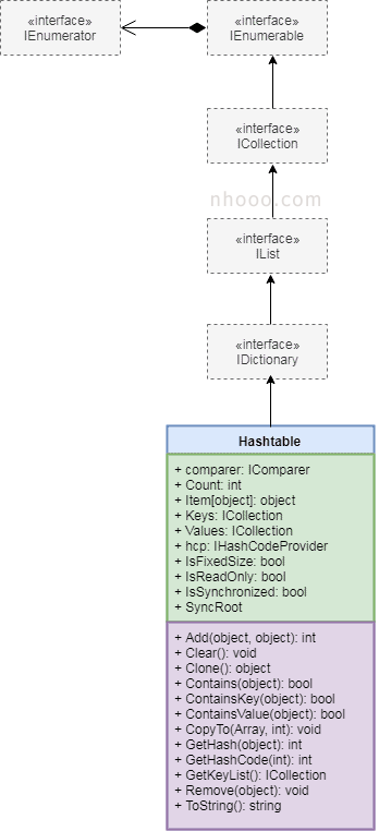 cities.Clear(); //刪除所有元素下圖說明了Hashtable類的層次結(jié)構(gòu)。