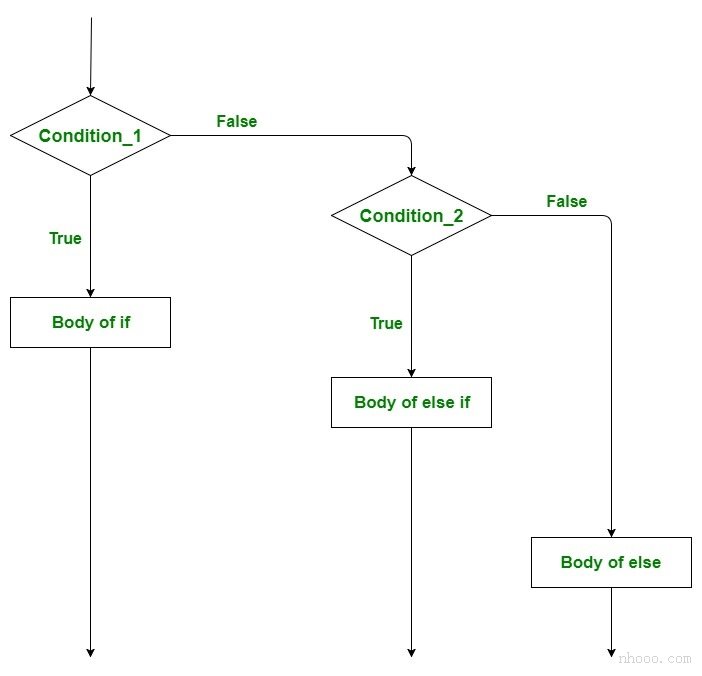 在這里,用戶可以在多個選項中進行選擇。if語句從上至下執(zhí)行。一旦if的任意條件為true,則將執(zhí)行與if關聯(lián)的語句,并跳過其余的if語句。如果所有條件都不成立,則將執(zhí)行最終的else語句。