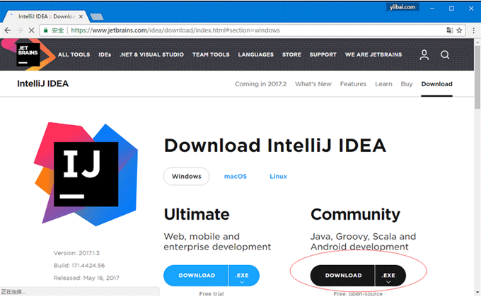 安裝最新版本的IntelliJ IDEA。 Kotlin版本從2015年開始就與IntelliJ IDEA捆綁在一起。從JetBrains官方網(wǎng)站( http://www.jetbrains.com/idea/download/index.html )下載免費的社區(qū)版本。