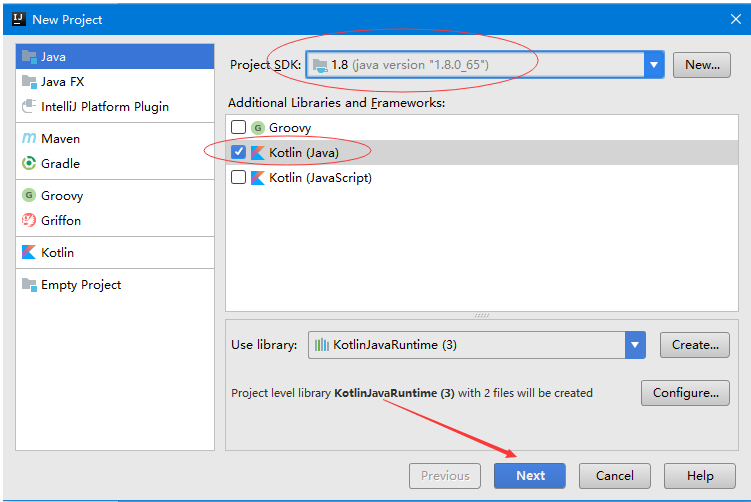 2、在安裝IntelliJ IDEA后,打開它并創(chuàng)建一個新項目。選擇菜單:【File】->【New Project】,Java Module并選擇SDK,Kotlin要與JDK 1.6+一起使用。 另外,選擇Kotlin(Java)復(fù)選框。